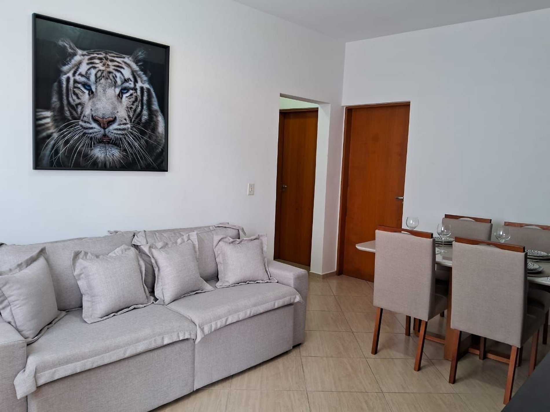 O apto possui o tamanho de 65 m2 bem distribuido entre dois quartos, sala, cozinha, banheiro e area de lavanderia todo decorado pensando no bem estar dos nossos hospedes
